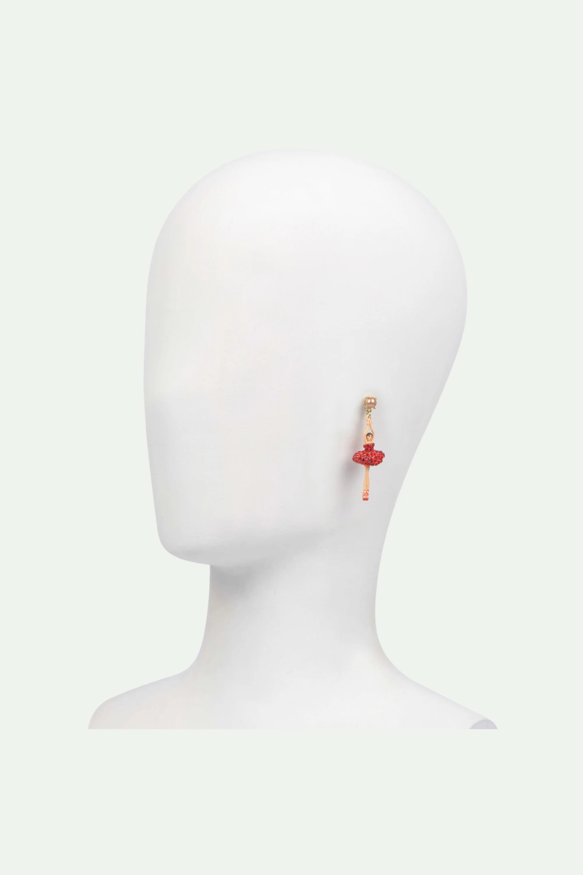 Clip on earrings toe-dancing ballerina with tutu paved with red rhinestones—
